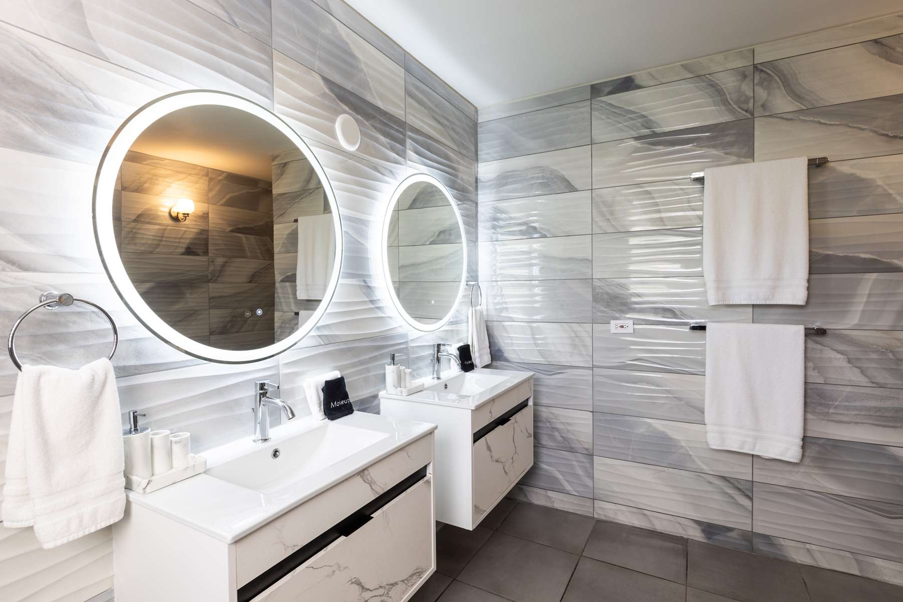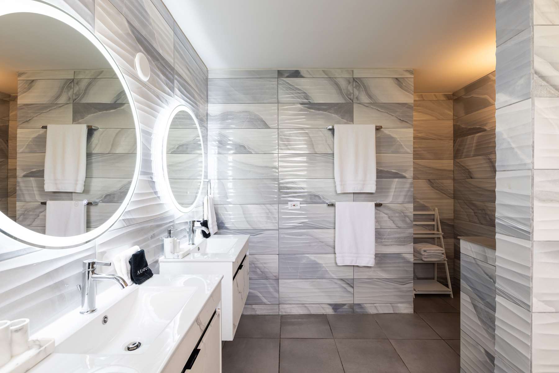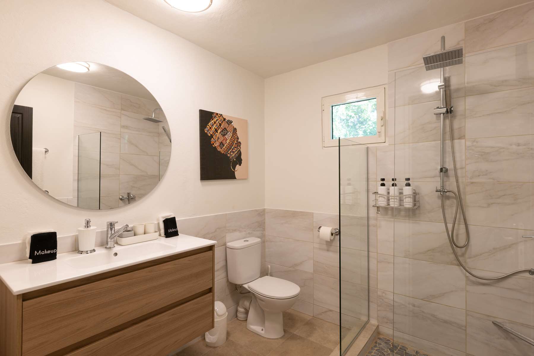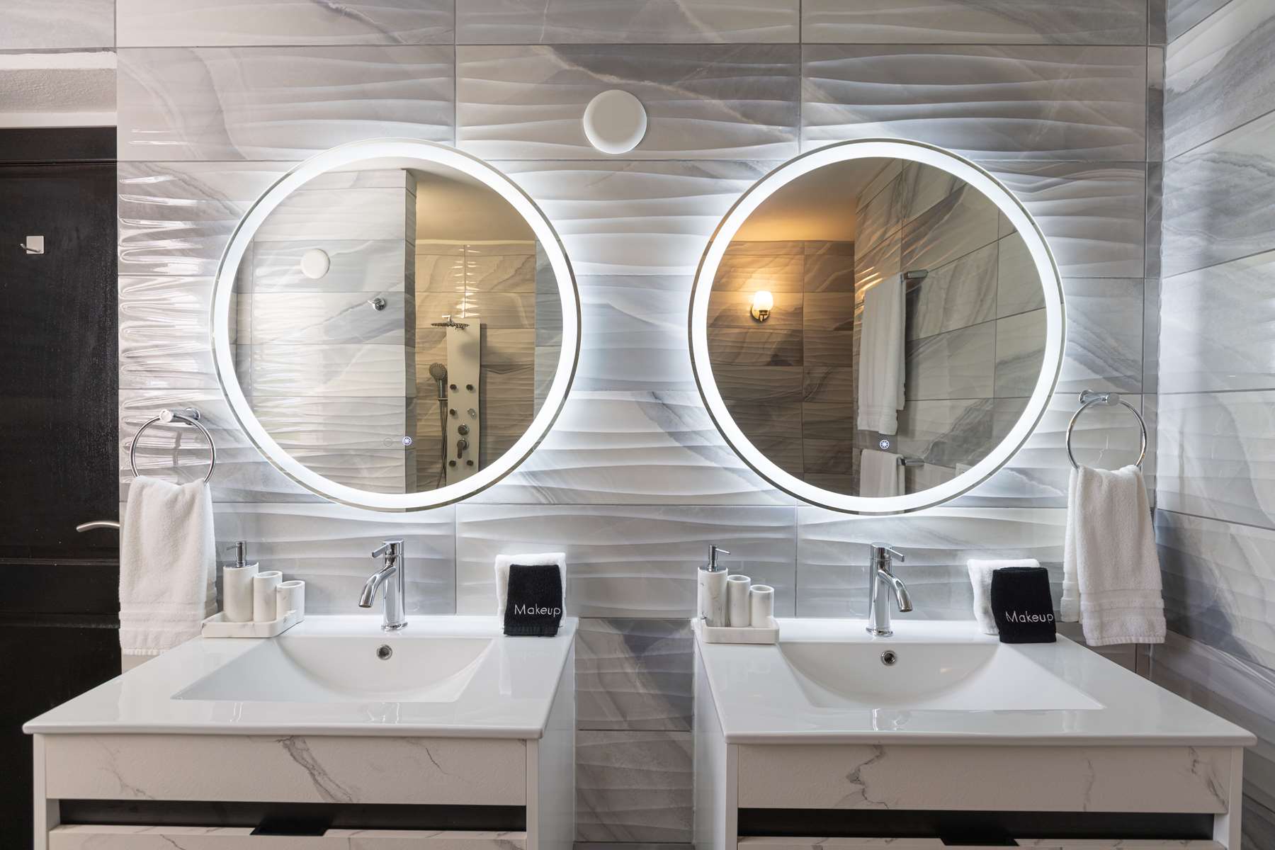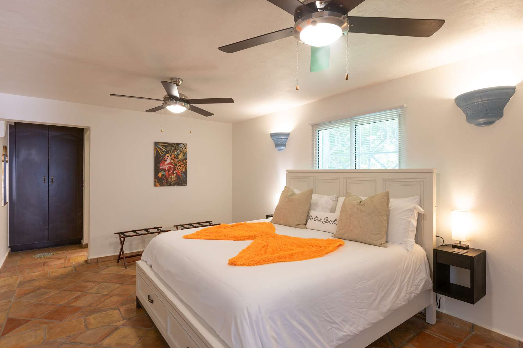 There are 3 bedrooms on the ground floor plus game room with foosball table and board games, 3 bedrooms have ensuite bathrooms and built-in closets, and 2 bedrooms directly connect to the pool deck. Upstairs you will find a large room with 2 queen beds with a spacious ensuite bathroom and private balcony with the same stunning views.